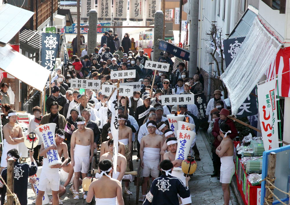 三月三日にゃ真雪の中で 裸はだしの押し祭り